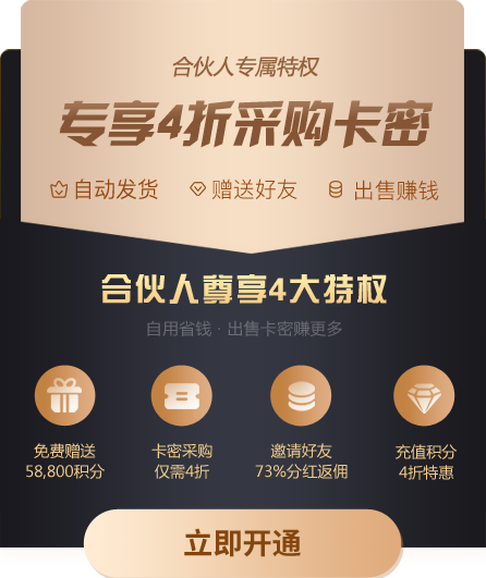 2. 在电脑端或联系客服导师购买卡密后,可将卡密出售给其他会员用户赚差价,无需囤货。购买的卡密销售价不能低于平台零售价的9折,若被其他代理举报属实的,将取消代理资格!如需大量批发卡密,请联系客服导师,批发价更低~