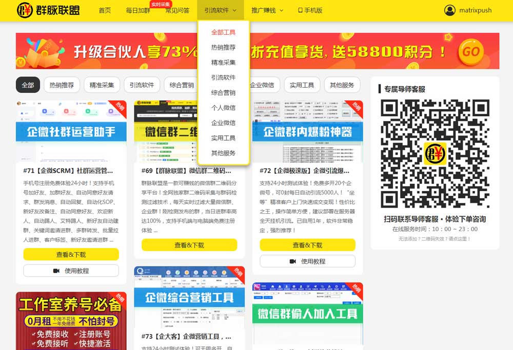 引流软件中,都是我们自用好用,挑细选、性价比极高的引流营销工具,自用好用推荐!大部分软件都有,提供软件下载地址、详细的软件安装使用教程。